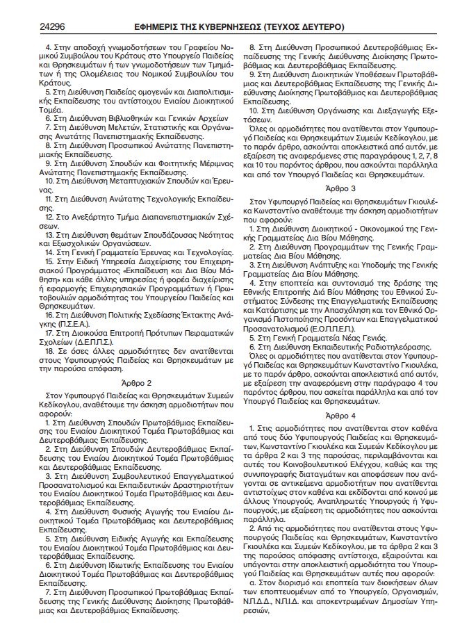ΦΕΚ: Καθορισμός αρμοδιοτήτων των υφυπουργών Παιδείας