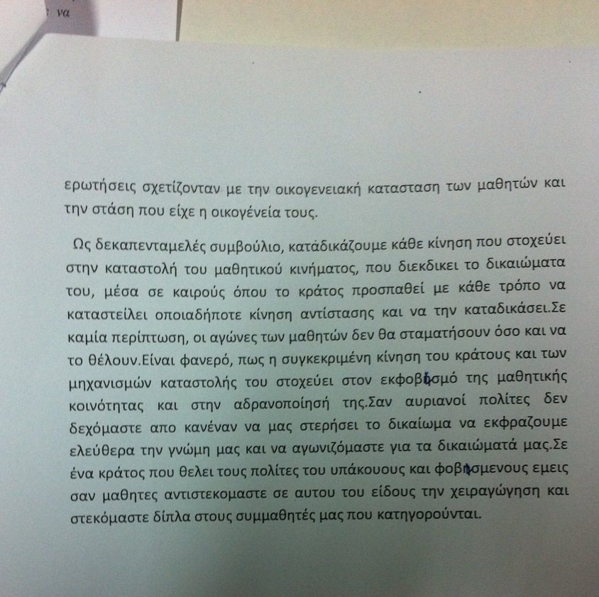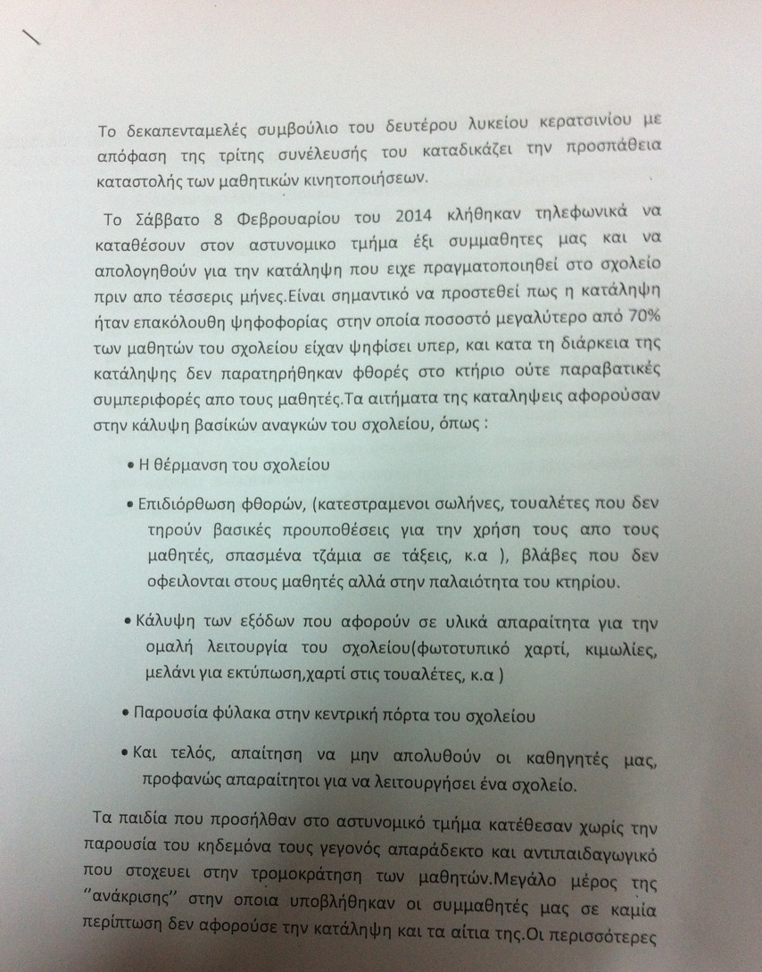 To tribune.gr δημοσιεύει την ανακοίνωση του 15μελές του 2ου ΓΕΛ Κερατσινίου