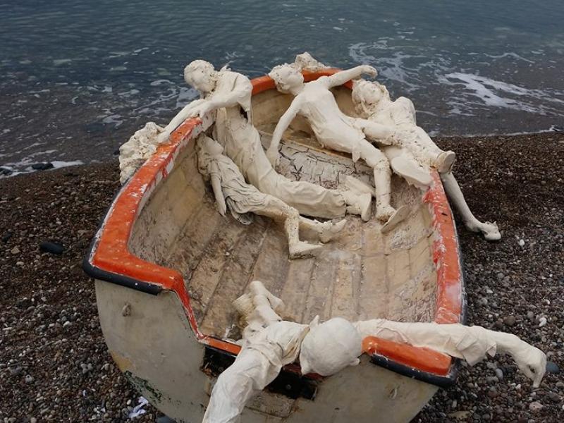 Όπως μας είπε η ίδια η καθηγήτρια «οι ανθρώπινες φιγούρες είναι φτιαγμένες από πολυομεθάνη και γυψόγαζες, ενώ η βάρκα ανήκε στο κοινοτικό συμβούλιο και θα πήγαινε για πέταμα...».