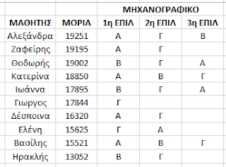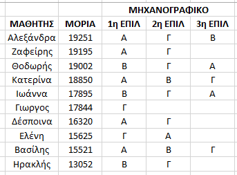 Τι θα συνέβαινε όμως εάν είχαμε διαφορετικά μηχανογραφικά . Ας κάνουμε μια πολύ πολύ μικρή αλλαγή στο μηχανογραφικό ενός μόνο μαθητή . Ας πούμε ότι η Αλεξάνδρα ( ο μαθητής με την μεγαλύτερη βαθμολογία ) δήλωνε ως 1η επιλογή την σχολή Γ και ως 2η την σχολή Α.