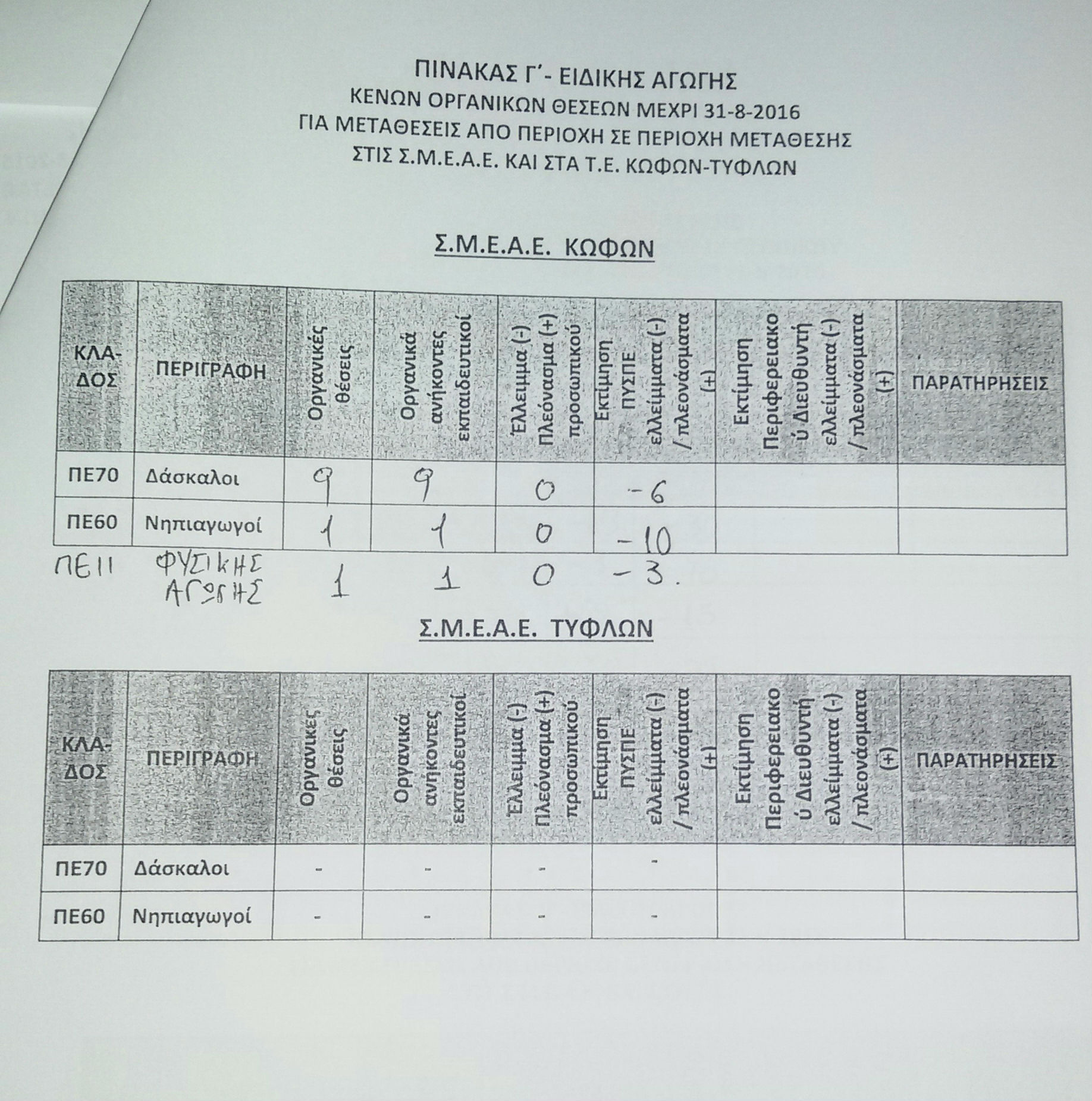 Στην 2η στήλη οι οργανικά ανήκοντες ανά ειδικότητα