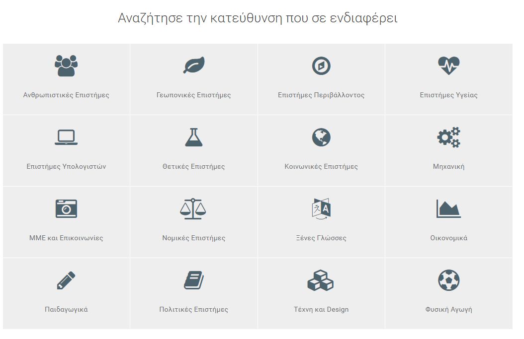 Για παράδειγμα οι επισκέπτες με ένα κλικ μπορούν να βρουν το Μεταπτυχιακό που θέλουν στο marketing, στην Δοίκηση Επιχειρήσεω, στην Ειδική Αγωγή ή οποιοδήποτε άλλο πεδίο θέλουν, γρήγορα, έγκυρα και εύχρηστα.