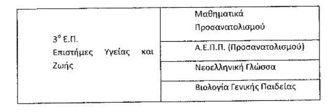 Αν οι υποψήφιοι εκτός από τα ανωτέρω τρία κοινά µαθήµατα επιλέξουν να εξετασθούν και στη Βιολογία Γενικής Παιδείας, τότε έχουν πρόσβαση στο 3οΕπιστηµονικό Πεδίο.
