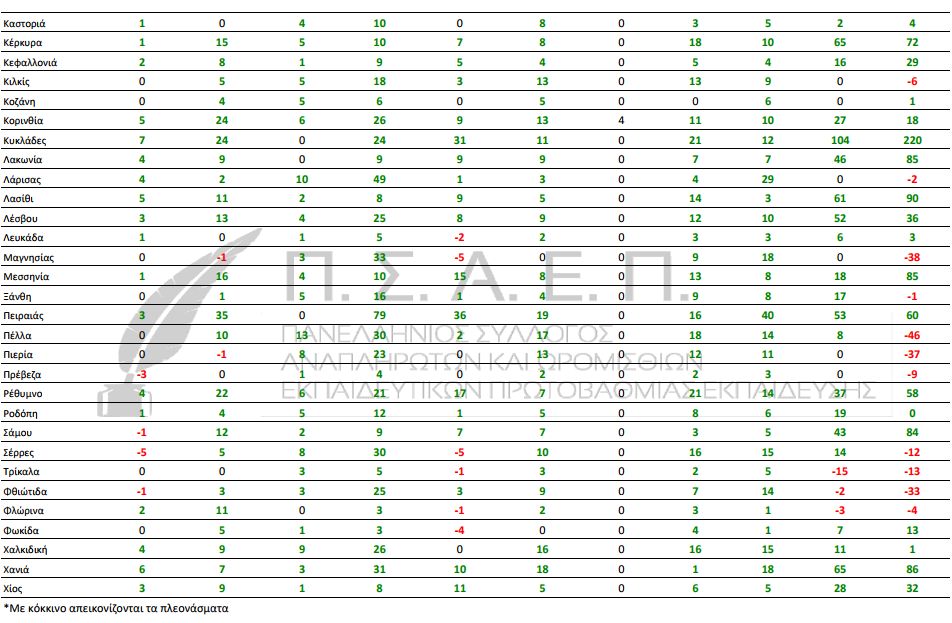επεξεργαστήκαμε τα κενά που έδωσε ο αιρετός του ΚΥΣΠΕ Β. Παληγιάννης σε συνδυασμό με τις αποσπάσεις που έγιναν πριν λίγες μέρες και δημιουργήσαμε πίνακα με τα υπάρχοντα κενά σε εκπαιδευτικούς Πρωτοβάθμιας Εκπαίδευσης.