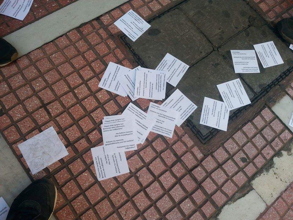 Μετά από συμβολική κατάληψη, οι φοιτητές ανήρτησαν γιγαντοπανό στο κτήριο και μοίρασαν τρικάκια στον διερχόμενο κόσμο.