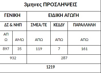 Αναλυτικά οι προσλήψεις στην Π.Ε. έχουν ως εξής: