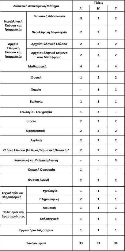 Αυτό είναι το ωρολόγιο πρόγραμμα των μαθημάτων των τριών τάξεων των Ημερησίων Γυμνασίων, που θα ισχύσει για το σχολικό έτος 2021-22.