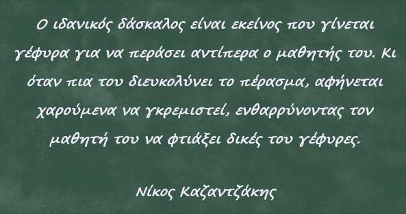 Μέσα στο κύμα της απαξίωσης του σημερινού σχολείου, ξεχωρίζει ένα πρόσωπο, ο εκπαιδευτικός. Είναι ο «σημαντικός άλλος», η μόνη φανερή φιγούρα του ανώνυμου σχολικού μηχανισμού που στα μάτια των μαθητών και της πλειονότητας της κοινωνίας έχει μια θαυματουργική δύναμη, άλλοτε θεία και άλλοτε διαβολική, άλλοτε ως φορέας σωτηρίας και άλλοτε ως φορέας απώλειας. Η αλήθεια είναι ότι, πολλές φορές άδικα, χρεώνεται ο εκπαιδευτικός όλα όσα πικραίνουν και απογοητεύουν τους μαθητές από την τρυφερή τους ηλικία στο πλαίσιο ενός εκπαιδευτικού συστήματος, το οποίο λειτουργώντας σαν αρένα ανελέητου ανταγωνισμού αδυνατεί να προσελκύσει τους μαθητές δίνοντας τους την απόλαυση της μάθησης και ικανοποιώντας τις μορφωτικές τους ανάγκες.
