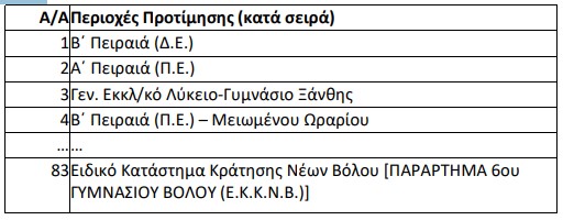 ΑΝΑΠΛΗΡΩΤΕΣ – ΠΕΡΙΟΧΕΣ ΠΡΟΤΙΜΗΣΗΣ