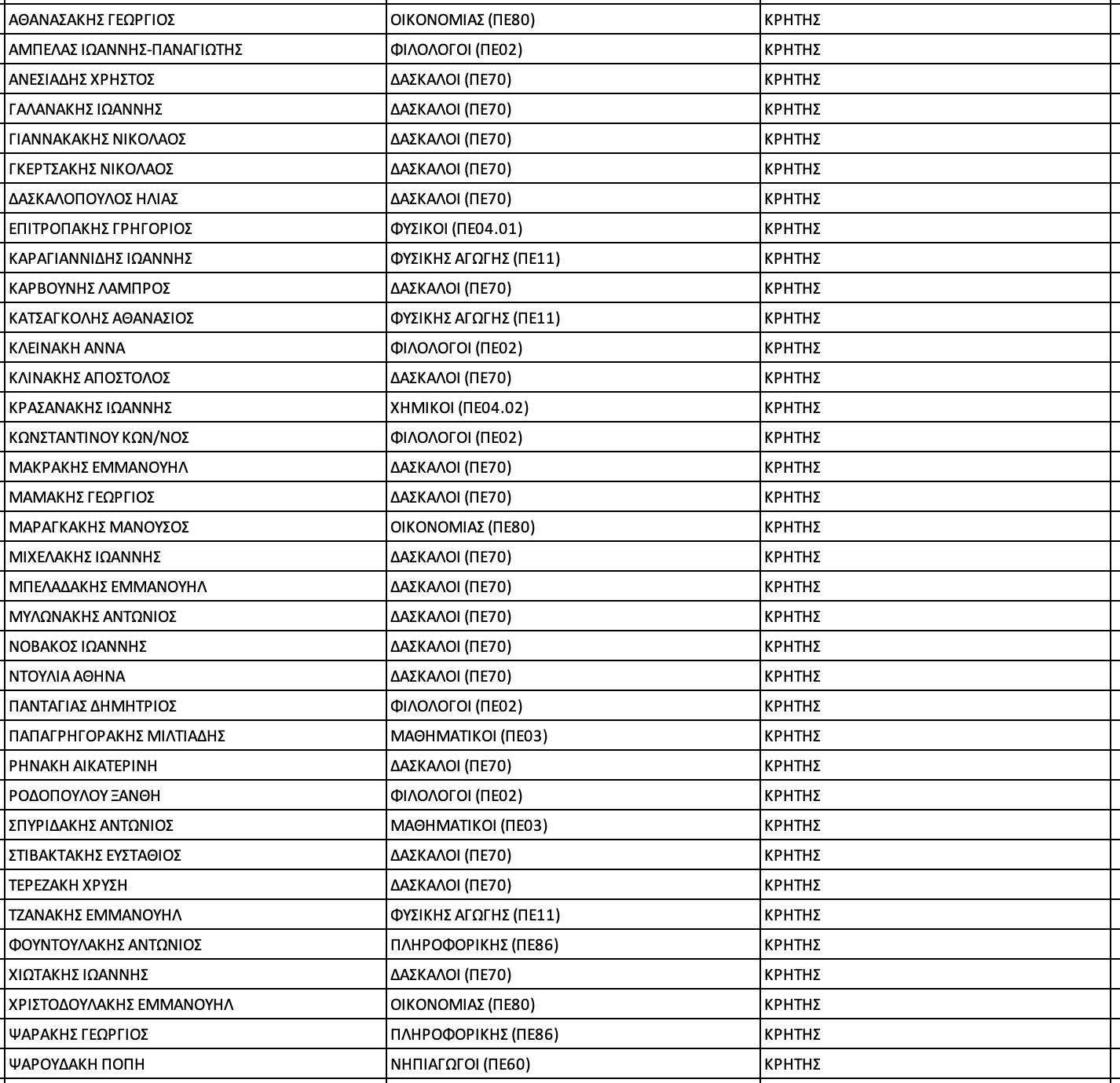 Στην Κρήτη, υποψήφιοι για τις διευθύνσεις πρωτοβάθμιας και δευτεροβάθμιας εκπαίδευσης στις τέσσερις περιφερειακές ενότητες είναι οι εξής: