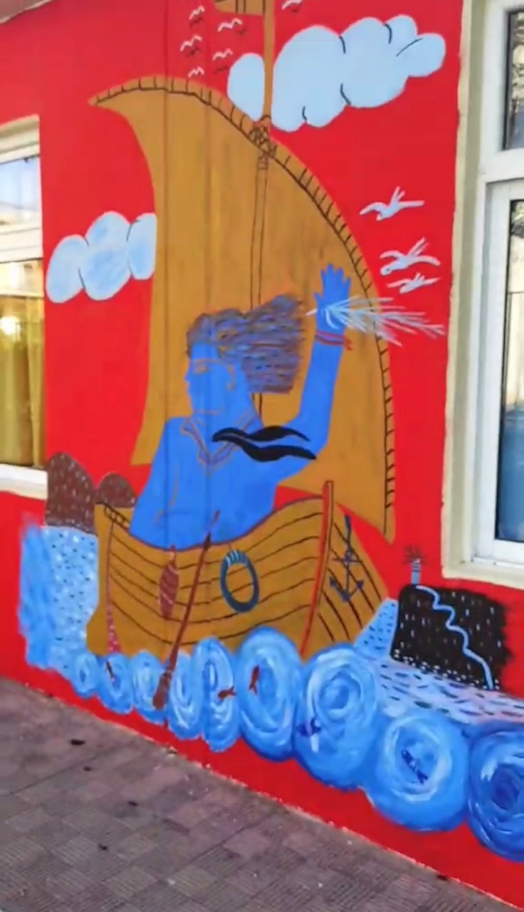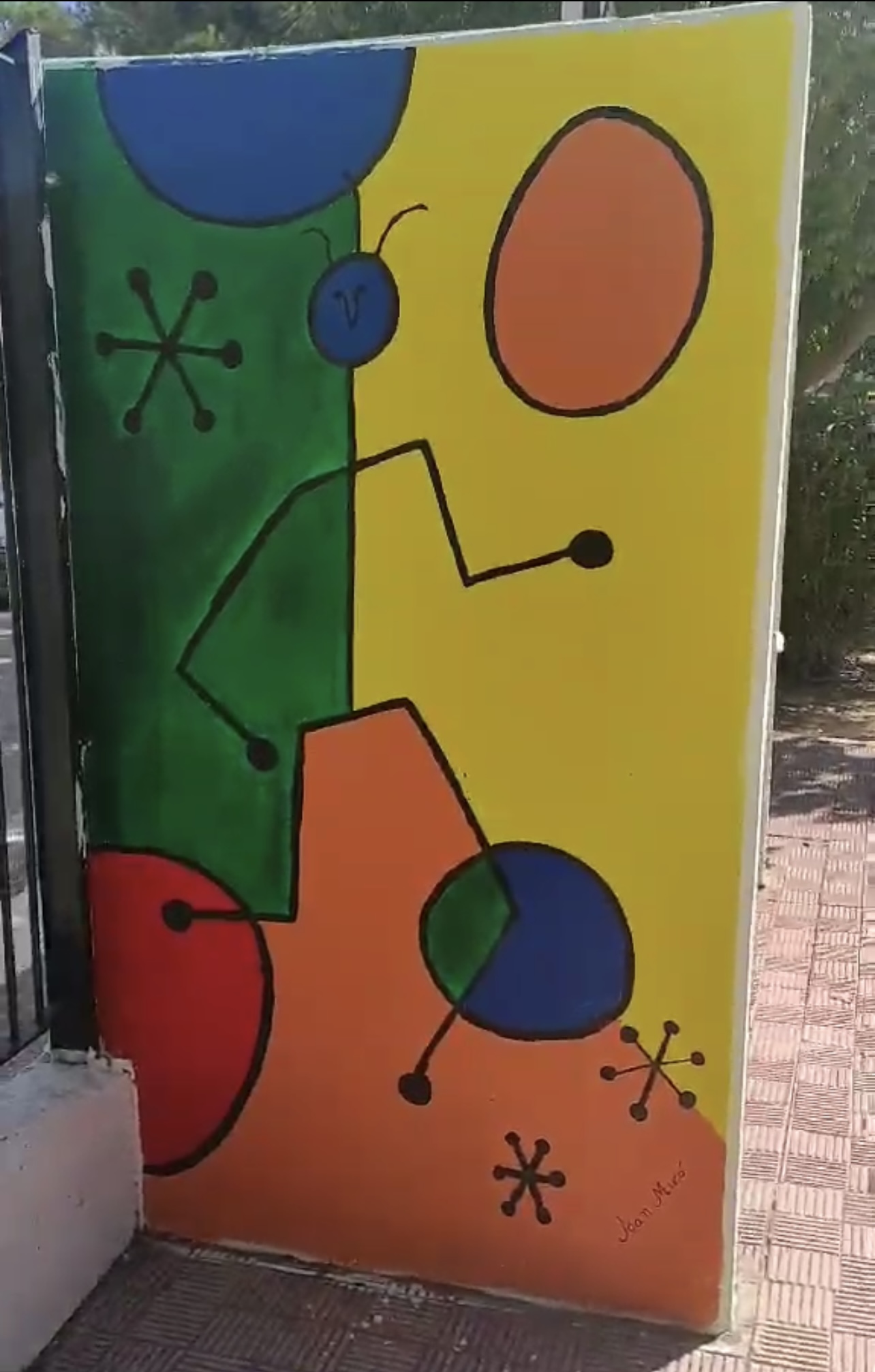 Ανάμεσα στα έργα που κοσμούν της εξωτερικές επιφάνειες είναι έργα των Μιρό, βαν Γκογκ, του Φασιανού και άλλων, μπλέκοντας διαφορετικά καλλιτεχνικά κύματα και εποχές, δημιουργώντας ένα όμορφο και ταυτόχρονα διδακτικό κλίμα.