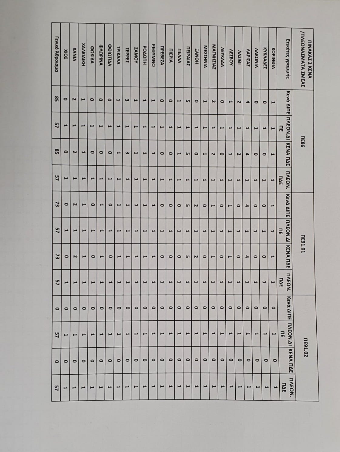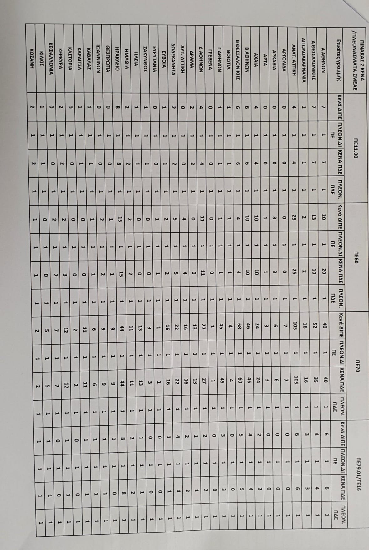Τα κενά Γενικής και Ειδικής Αγωγής Π.Ε, τα οποία δόθηκαν από τις Περιφερειακές Διευθύνσεις Εκπαίδευσης και τις Διευθύνσεις Πρωτοβάθμιας με βάση των οποίων θα τρέξει το σύστημα για τις αποσπάσεις, δημοσιοποίησε σήμερα ο αιρετός Νίκος Φασφαλής.