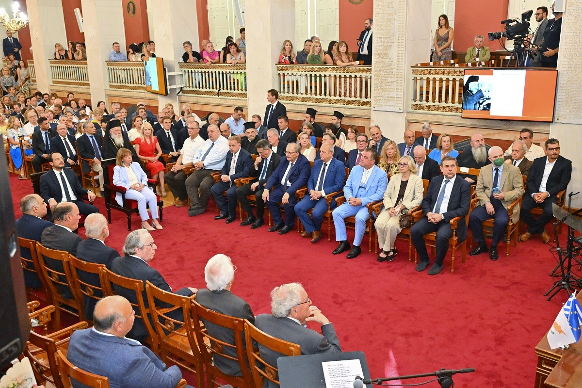 Είναι με ανάμικτα αισθήματα που βρίσκομαι απόψε στο βήμα αυτό. Αισθήματα χαρμολύπης. Από την μια, είναι η εξέχουσα τιμή να είμαι προσκεκλημένος ομιλητής του αρχαιότερου ακαδημαϊκού ιδρύματος της Ελλάδος, καθώς επίσης η συγκίνηση και η υπερηφάνεια του σπουδαστή που έλαβε τα φώτα του. Είναι, όμως, και η στεναχώρια για το γεγονός ότι θα μιλήσω για την επέτειο ενός συνεχιζόμενου για μισό αιώνα, 50 ολόκληρα χρόνια δράματος της Κύπρου και του Ελληνισμού.
