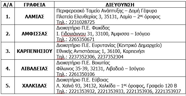 Για πληροφορίες και αιτήσεις (με καταληκτική ημερομηνία 16/2/2025) οι ενδιαφερόμενοι μπορούν να ενημερωθούν από την ιστοσελίδα της Δομής www.gefyra.com.gr και από τα Περιφερειακά Γραφεία ως ακολούθως:
