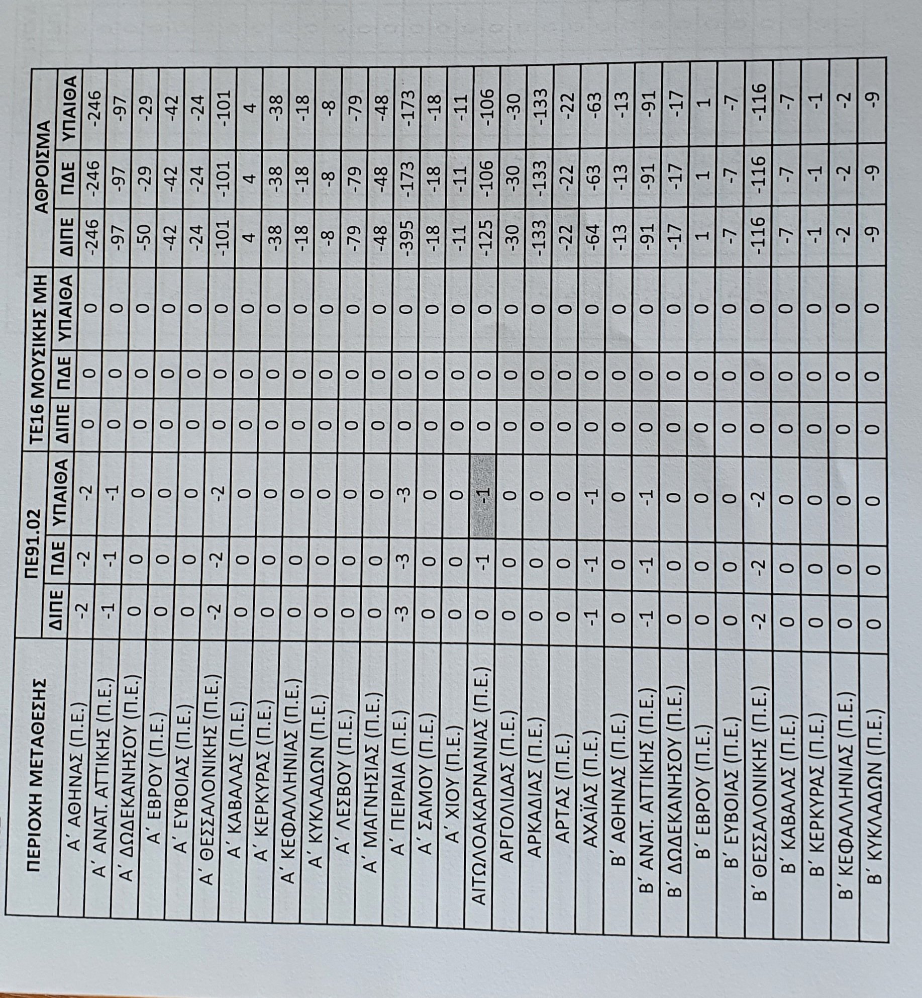 Οι Μεταθέσεις Γενικής Αγωγής θα ακολουθήσουν και θα γίνουν με βάση τα κενά που εμφανίζονται στους παρακάτω πίνακες.