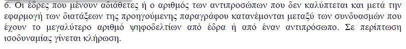 Έχουν μείνει αδιάθετες 3 έδρες οι οποίες σύμφωνα με το νόμο 1264/1982 άρθρο 12 παράγραφος 5 :