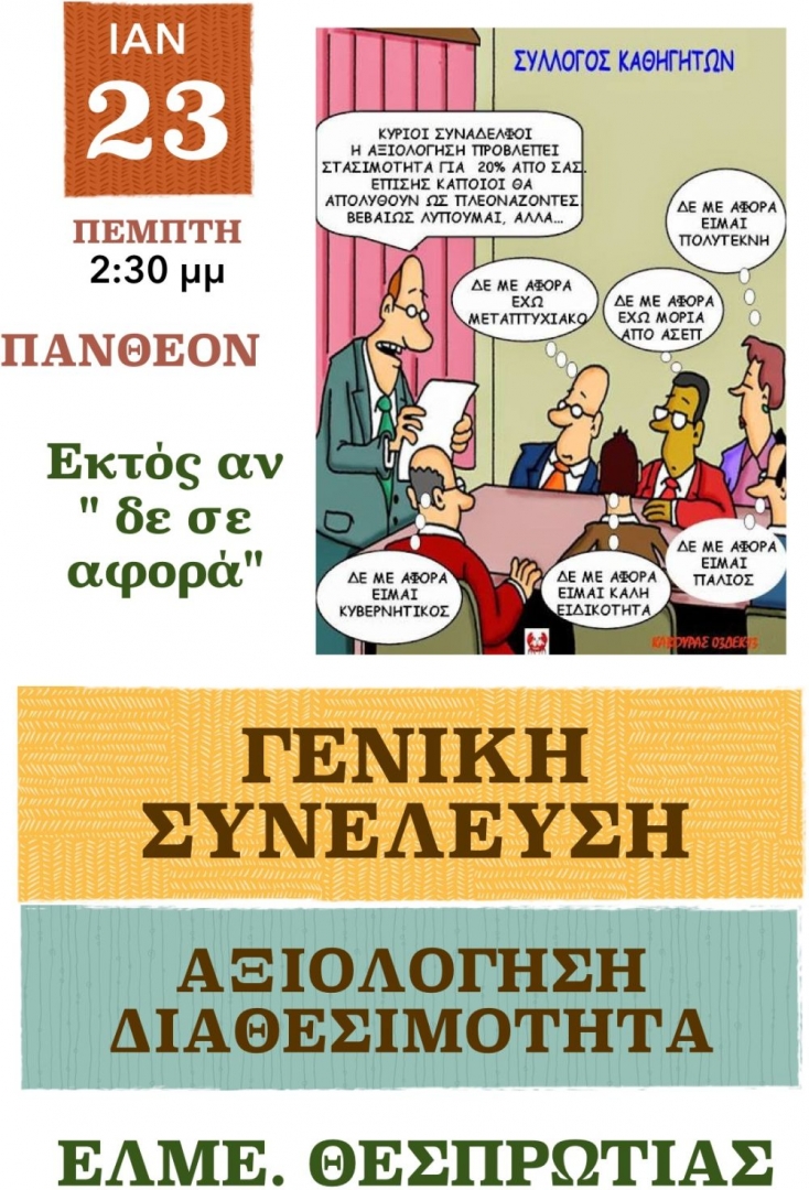 ΕΛΜΕ Θεσπρωτίας: Γενική Συνέλευση για την αξιολόγηση και τη διαθεσιμότητα, 23/1