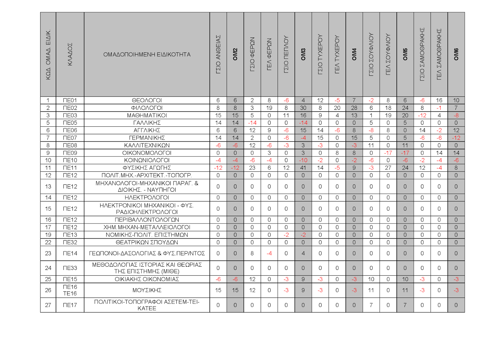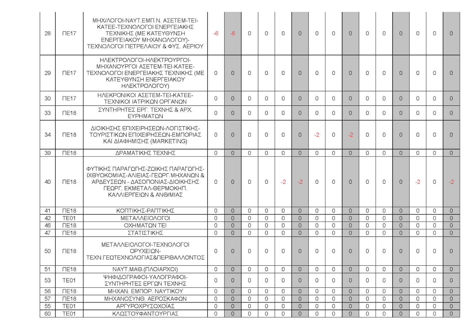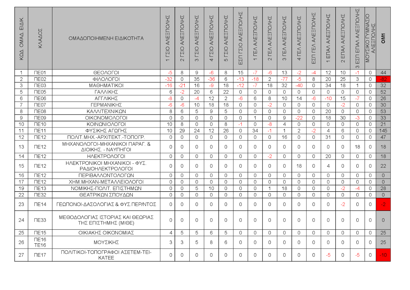 Πίνακες σε ώρες κενών και πλεονασμάτων των σχολείων ΕΒΡΟΥ