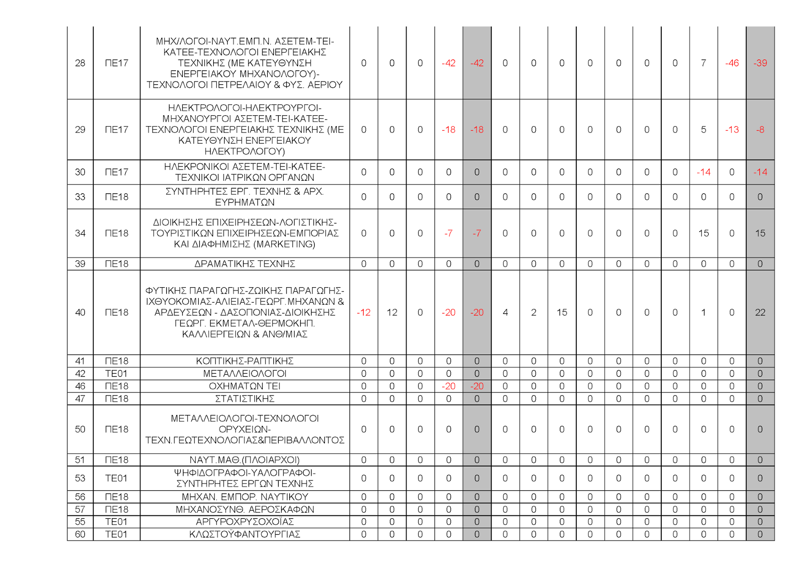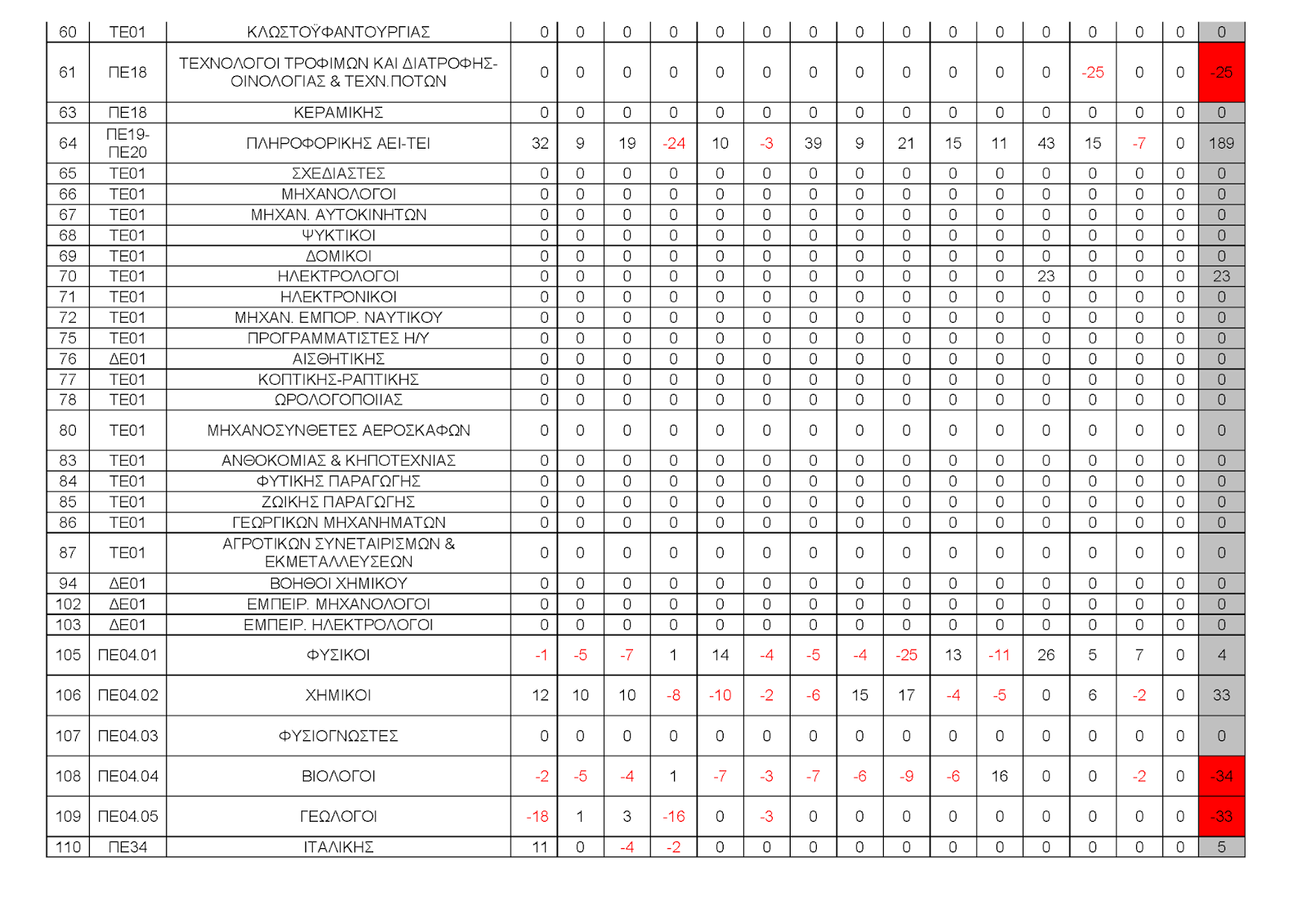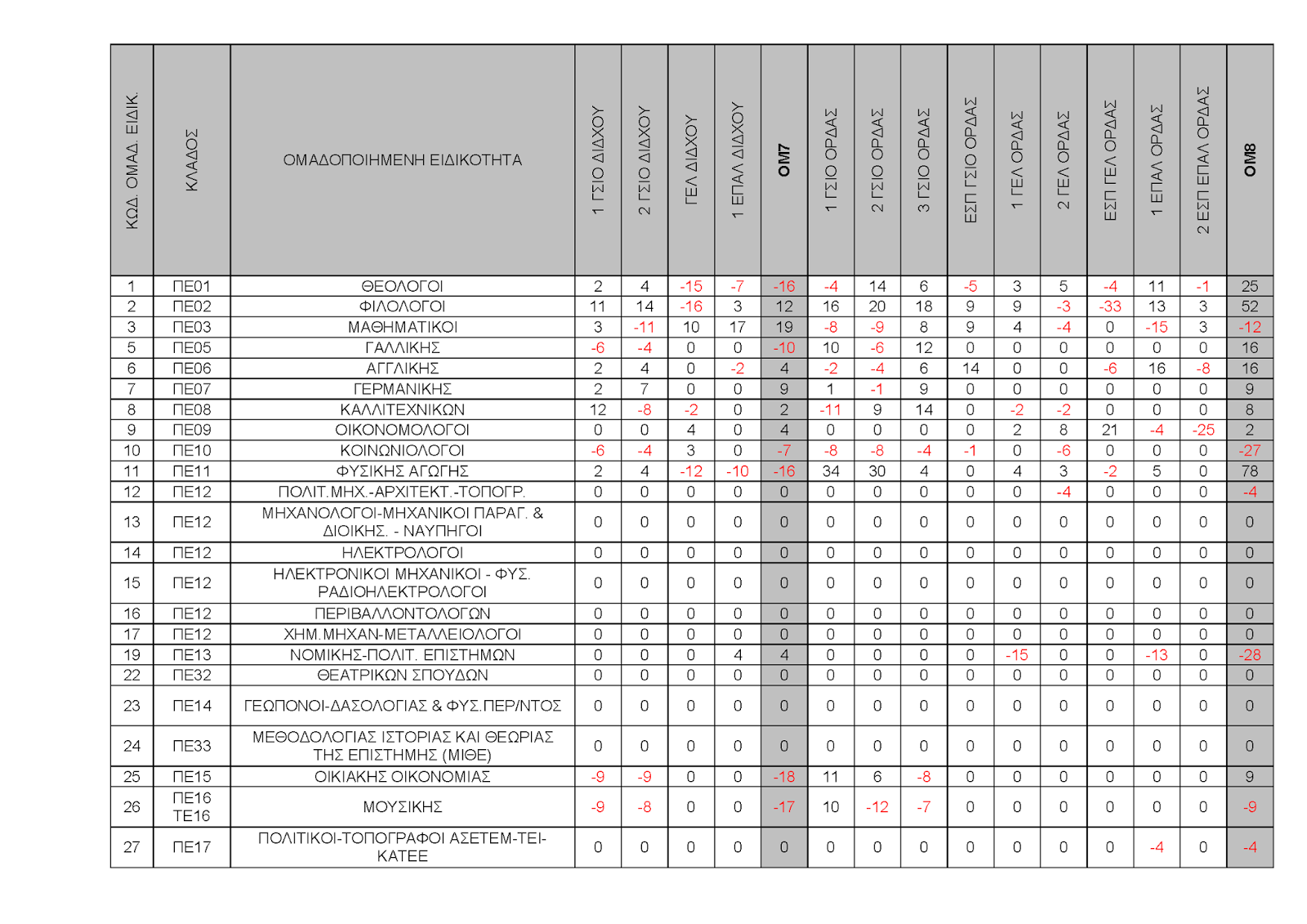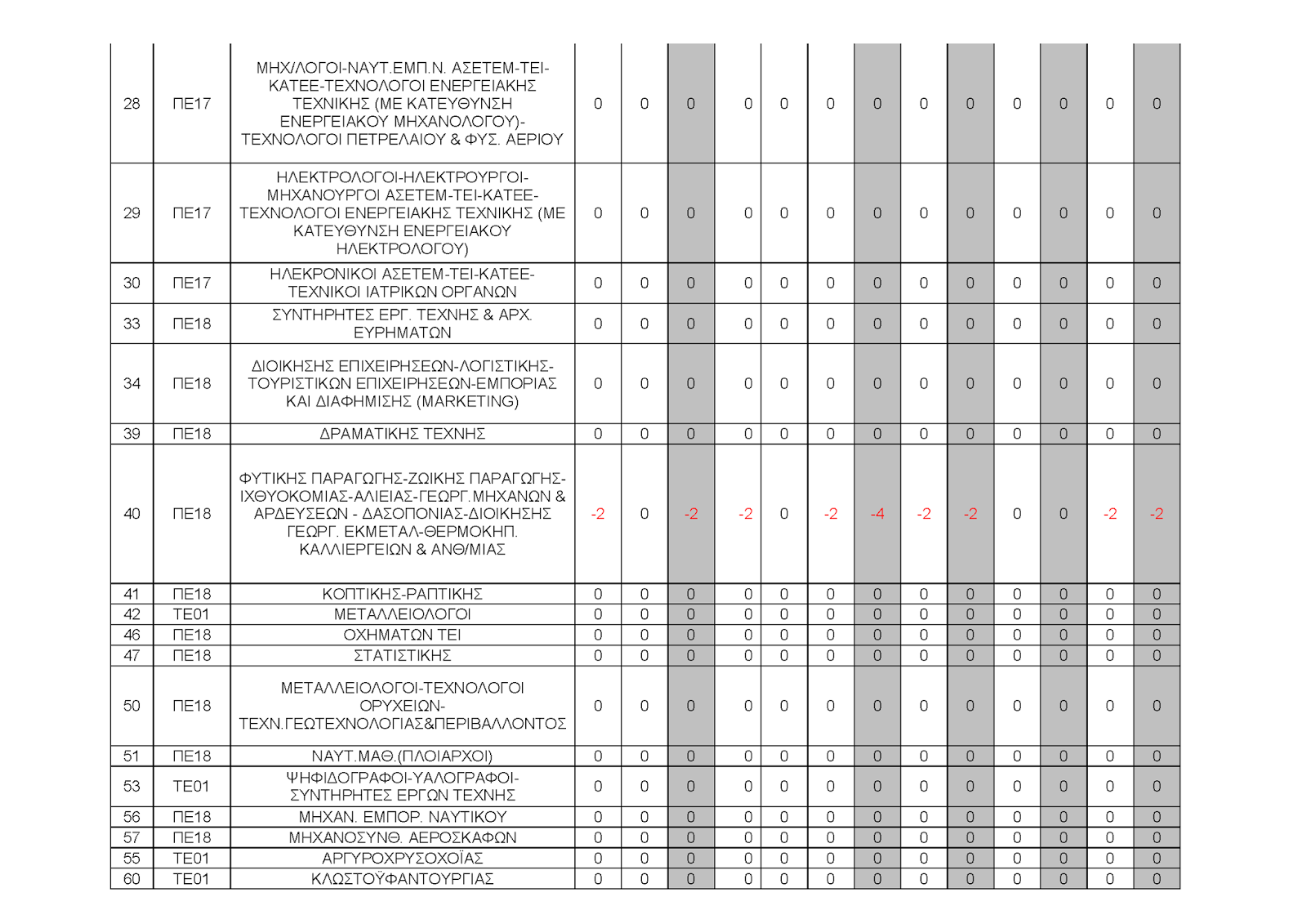 Πίνακες σε ώρες κενών και πλεονασμάτων των σχολείων ΕΒΡΟΥ