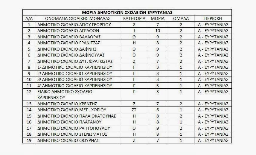 Για δική σας ενημέρωση σας κοινοποιώ τα Μόρια των Σχολικών Μονάδων της Ευρυτανίας.