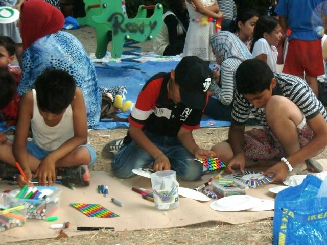 Ειδικά στα δεκάδες προσφυγόπουλα, που χαμογέλασαν για λίγο παίζοντας με μπαλόνια και ζωγραφίζοντας σε χαρτιά, με μαρκαδόρους και κηρομπογιές.