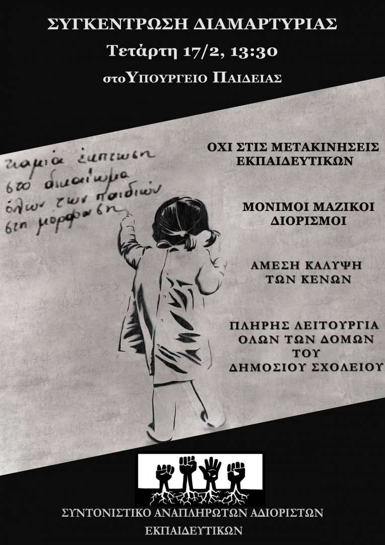 ΟΛΕΣ/ΟΛΟΙ στη συγκέντρωση διαμαρτυρίας στο Υπουργείο Παιδείας την Τετάρτη 17/2/16, 13:30