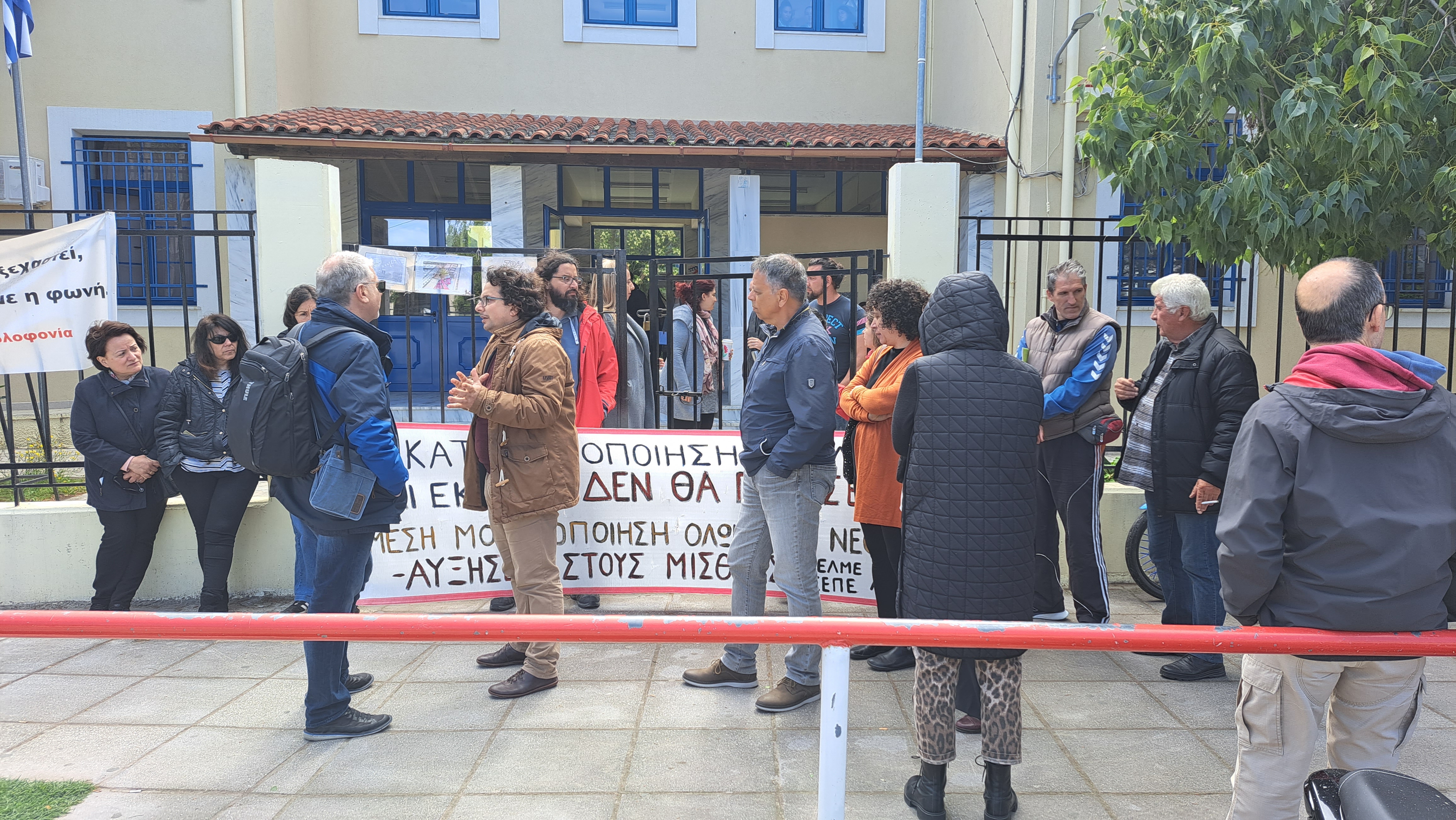 Η ΕΛΜΕ Λήμνου με σχετική της ανακοίνωση ενημερώνει ότι οι εκπαιδευτικοί της Δευτεροβάθμιας και Πρωτοβάθμιας Εκπαίδευσης της Λήμνου πραγματοποίησαν σήμερα (27/04) κινητοποίηση, ώστε να αποτρέψουν την επίσκεψη του σχολικού Σύμβουλο αξιολογητή στο ΓΕΛ/ΕΠΑΛ Μύρνας.