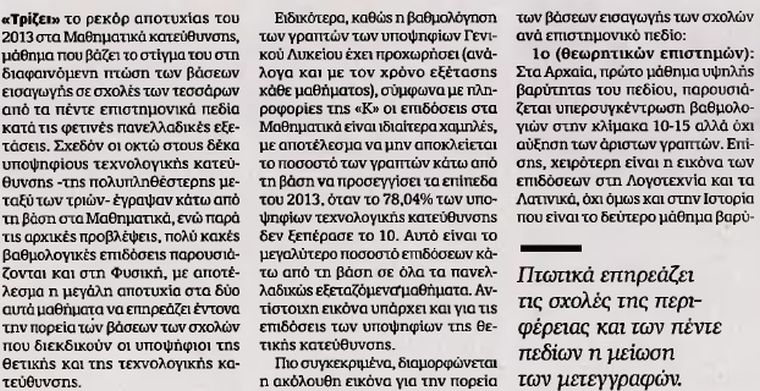 Σχεδόν το 80% των υποψηφίων τεχνολογικής κατεύθυνσης έγραψε κάτω από 10Πολύ καλές επιδόσεις και τη ΦυσικήΠτωτικά επηρεάζει τις σχολές της περιφέρειας και των πέντε πεδίων η μείωση των μετεγγραφών.