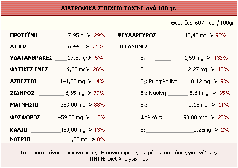 Ας δούμε όμως τι είναι το ταχίνι... Το ταχίνι είναι φυσικό προϊόν και παράγεται από σπέρματα διαλεγμένων σπόρων του σησαμιού (Sesamun Indicum), περνώντας από τη διαδικασία της αποφλοίωσης και της ξήρανσης. Το ταχίνι το παρασκευάζουν από φρυγμένα στο φούρνο σπόρια σουσαμιού. Εμφανίζεται ως πολτός, ως ελαιώδης κρέμα, αλεσμένου σησαμιού. Η ρίζα της λέξης βρίσκεται στην τουρκική γλώσσα και σημαίνει σησαμόπολτος.