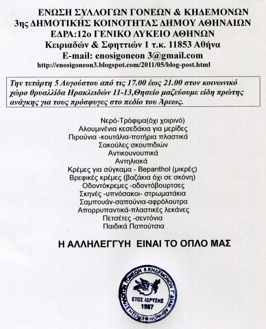 Ενωση συλλόγων γονέων και κηδεμόνων 3ης δημοτικής κοινότητας Δήμου Αθηναίων