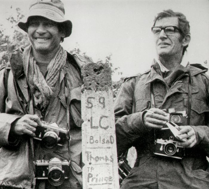 Οι φωτογράφοι Henri Huet και Larry Burrows φωτογραφίζονται το Φεβρουάριο του 1971 στα σύνορα Βιετνάμ - Λάος. Σκοτώθηκαν μαζί με δύο άλλους όταν το ελικόπτερό τους χτυπήθηκε από πυρά λίγες ημέρες αργότερα.