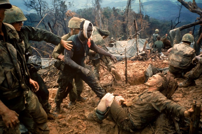 Πληγωμένος στρατιώτης απομακρύνεται από έναν άλλον σύντροφό του, πληγωμένο επίσης ύστερα από μία μάχη στο λόφο 484 στο Βιετνάμ.