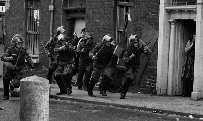 Σκηνικό πολέμου στο Bogside στο Derry στη Βόρεια Ιρλανδία το 1971