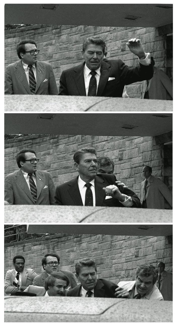Ο πρόεδρος των ΗΠΑ Ρόναλντ Ρέιγκαν ύστερα από την επίθεση που του έγινε και τραυματίστηκε από σφαίρα από τον John Hinckley Jr. το 1981