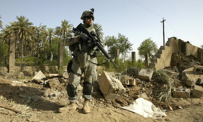 Αμερικανός στρατιώτης της 4ης Μεραρχίας Πεζικού φρουρεί το μέρος ύστερα από την πρόσφατη αεροπορική επιδρομή εναντίον του ηγέτη της Αλ Κάιντα στο Ιράκ Αμπού Μουσάμπ Αλ Ζαρκάουι, σε ένα πομμονωμένο φοινικόδασος στη Βαγδάτη, 2006