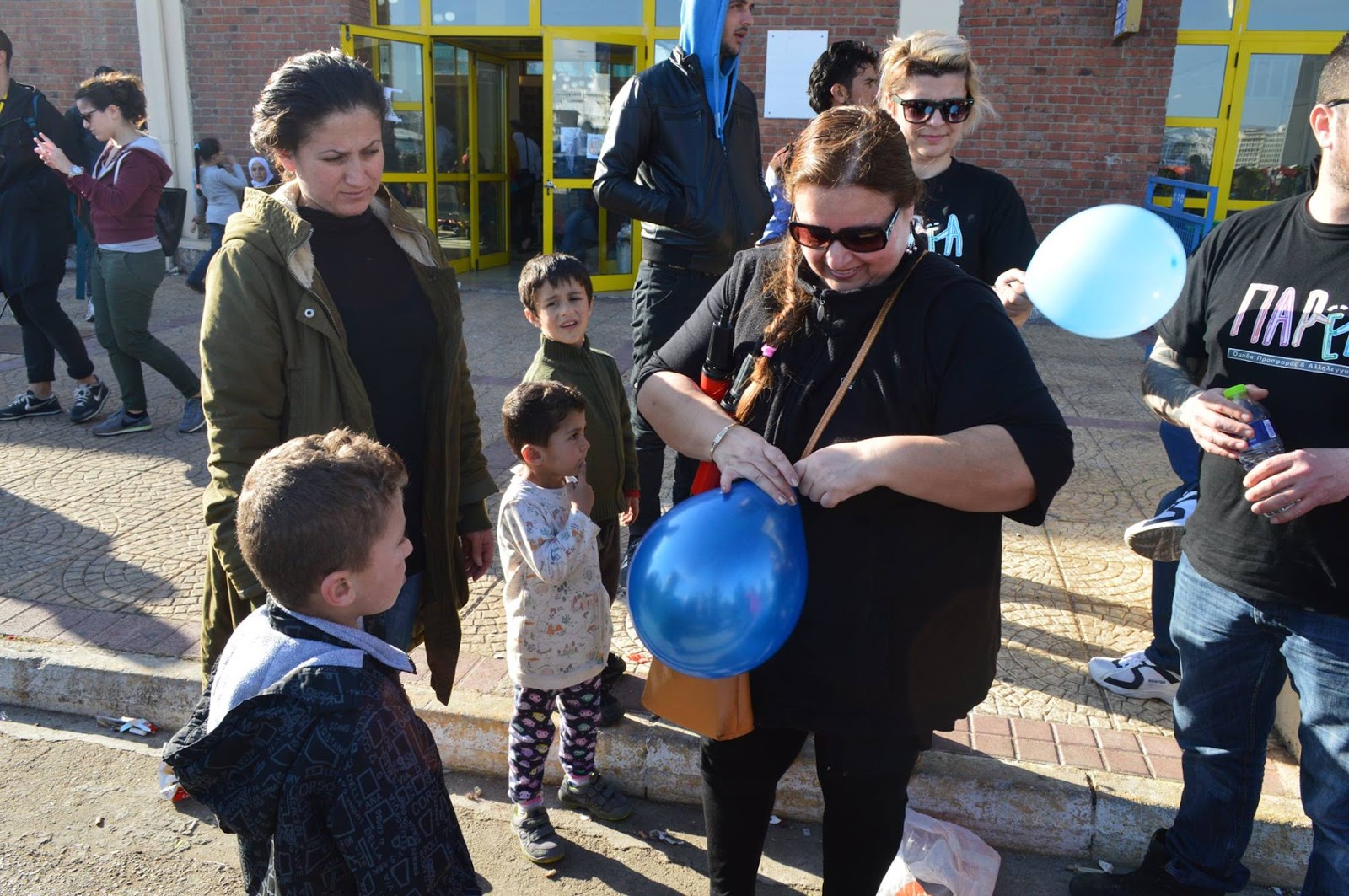 «Συναντηθήκαμε σήμερα στις 15:00 στο λιμάνι για να παραδώσουμε τα σακίδια στα παιδιά :) Η μέρα τέλεια, σχεδόν καλοκαίρι! Από νωρίς μας είχε ενημερώσει η Ντιλένα να πάμε στην Ε3. Εκεί υπήρχαν περίπου 150 παιδιά..στις άλλες αίθουσες ήταν πολλά περισσότερα, δεν θα έφταναν αυτά που είχαμε να τους δώσουμε για όλα. Η Ντίνα και η Ντιλένα ήταν από το πρωί εκεί να βοηθήσουν άλλες ομάδες αλληλεγγύης (όπως σχεδόν κάθε μέρα). Φορτωθήκαμε τα σακίδια και πήγαμε προς τα παιδιά. Πόσα παιδιά….πόσα μωρά…..’Ετρεχαν όλα προς το μέρος μας να πάρουν ένα σακίδιο. Μέσα σε δυο λεπτά τα είχαμε δώσει όλα. Χωρίς καυγάδες, χωρίς φωνές, χωρίς σπρώξιμο, μέσα σε χαμόγελα. Οι γονείς να μας λένε “ευχαριστώ¨ και τα πιτσιρίκια να έχουν ήδη ανοίξει τις τσάντες και να χαμογελάνε με το περιεχόμενο. Άλλο να ξεκινάει την ζωγραφική, άλλο να φοράει τον σκούφο του. άλλο το αδιάβροχο (τρελάθηκε μια μικρή με το αδιάβροχο της)! Φυσικά δεν έφτασαν για όλους, αλλά είχαμε μαζί μας σοκοφρέτες και χυμούς από την κα Ρένα, μια σακούλα με καλούδια από το 8ο Νηπιαγωγείο Μεταμόρφωσης….και μπαλόνια! Τι χαμός έγινε με τα μπαλόνια :) Φουσκώσαμε περισσότερα από 300. Έπαιζαν όλα μαζί μέσα και έξω από την αίθουσα :) Ξαφνικά η Ε3 γέμισε χρώματα!!!!!! Πόσο όμορφα συναισθήματα πάλι. Πόσο γεμάτοι φύγαμε για ακόμα μια φορά. Πόσες καλές κουβέντες ακούσαμε. Πόσο όμορφες είναι αυτές οι γυναίκες με τις μαντήλες τους!!!!!! Δεν τελειώσαμε όμως εδώ. Είχαμε μαζί μας 30 μερίδες που μας είχαν προσφέρει εχθές η Σοφία και ο Σίμος. Τις ζεστάναμε σε ένα γκαζάκι και μια κατσαρόλα που είχαμε πάρει μαζί και τις κεράσαμε στους άστεγους φίλους μας στην Ε7.