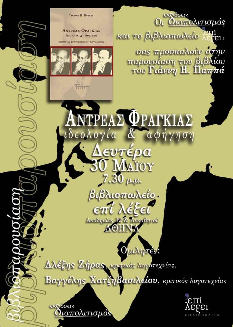 Παρουσίαση βιβλίου, του Αντρέα Φραγκιά στην Αθήνα στις 30/5
