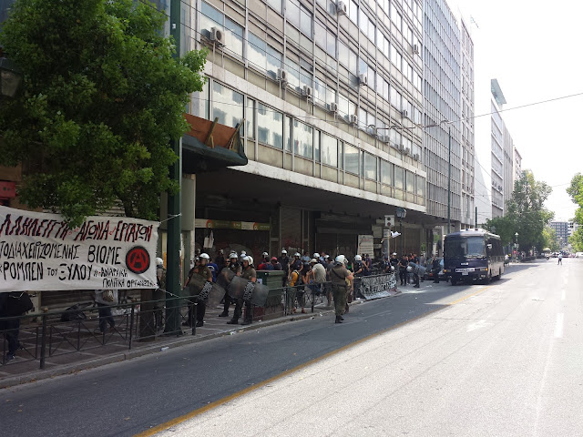 Σύμφωνα με την ενημέρωση από το site της ΒΙΟΜΕ ο επικεφαλής των ΜΑΤ απείλησε τους διαδηλωτές: "Αν στήσετε σκηνες θα αγκαλιαστουμε. Εχουμε εντολές από πάνω".