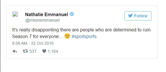 Η HBO δεν έχει επιβεβαιώσει κάτι από τα παρακάτω. Παρόλαυτά Νathalie Emmanuel (η οποία υποδύεται την υπηρέτρια της Danaerys) έμαθε για το spoiler και δεν έδειξε πολύ χαρούμενη...