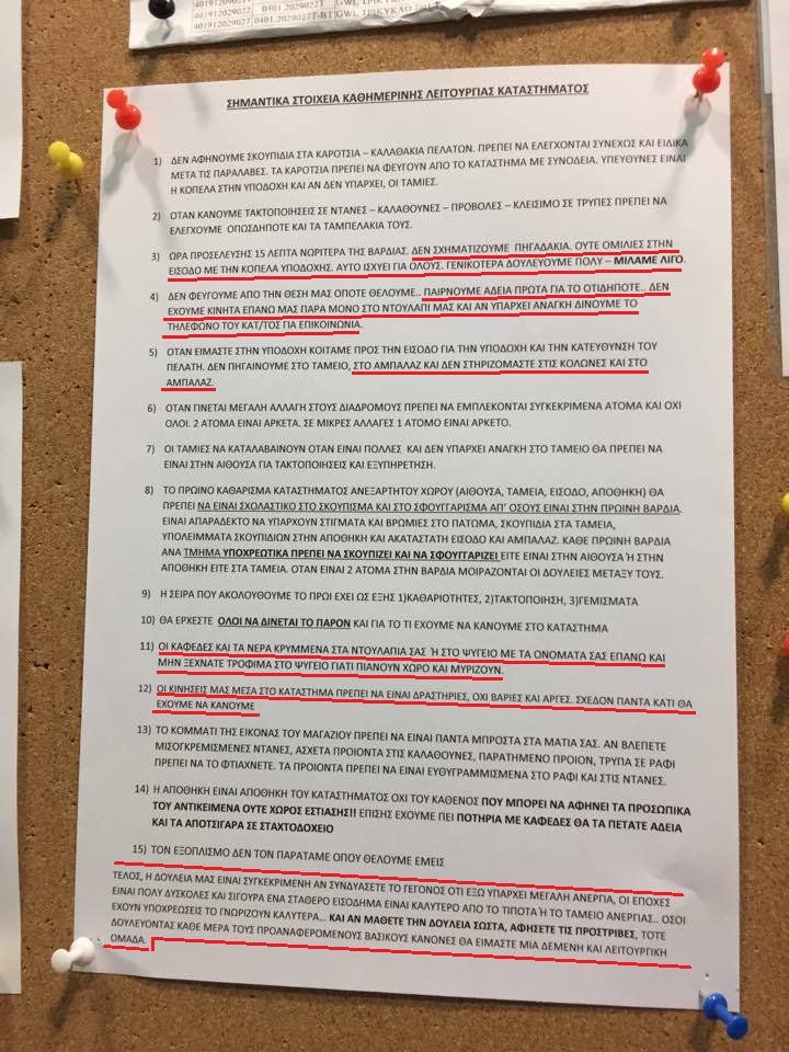 Απίστευτες "οδηγίες" σε εργαζόμενους από εργοδοσία και διεύθυνση επιχείρησης αλυσίδας καταστημάτων.