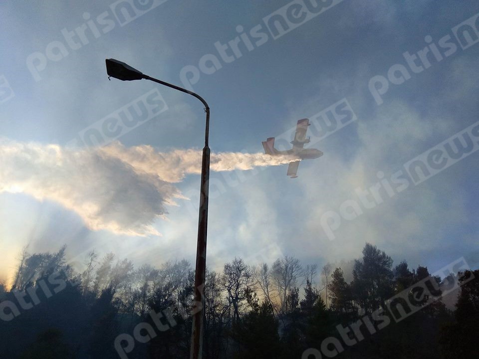 Σύμφωνα με το, patrisnews.com, επί τόπου επιχειρούν ισχυρές δυνάμεις της Πυροσβεστικής, με 34 άνδρες και 17 οχήματα, ενώ δύο Κανανταίρ πραγματοποιούν συνεχείς ρίψεις νερού.