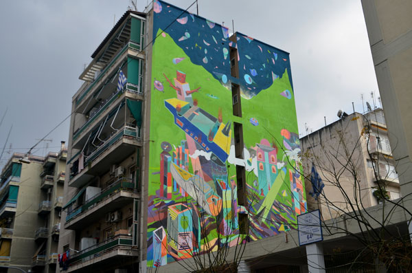 To ” Colorful tsounami” επιβεβαιώνει το όνομα του με τα άπειρα χρώματα που έχει χρησιμοποιήσει ο Βαγγέλης Χούρσογλου σε αυτή την τοιχογραφία διαστάσεων 20 x 12m. Παρότι το συγκεκριμένο του έργο μπορεί να μην ξεπερνάει σε φήμη το επίσης δικό του ”Colorful warrior”, που βρίσκεται στο σταθμό μοναστηράκι, έχει ως ατού το ότι βρίσκεται στον τοίχο μιας πολυκατοικίας τον οποίο μπορούν να χαζέψουν οι λιλιπούτειοι μαθητές του 64ο δημοτικού σχολείου Αθηνών από το προαύλιο τους.