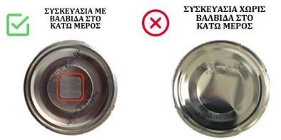Οι ελαττωματικές συσκευασίες είναι εύκολα αναγνωρίσιμες διότι δεν διαθέτουν τη βαλβίδα εκτόνωσης πίεσης στο κάτω μέρος και μπορεί να ανιχνευθεί μια ανώμαλη διόγκωση στη συσκευασία (βλ. κάτωθι φωτογραφίες).