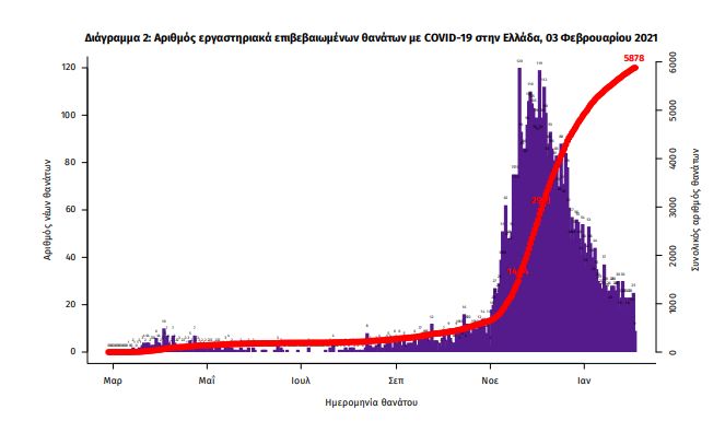 Τέλος, έχουμε 27 νέους θανάτους από τη νόσο COVID-19, φθάνοντας τους 5878 θανάτους συνολικά στη χώρα, εκ των οποίων 3457 (58.8%) άνδρες. Η διάμεση ηλικία των θανόντων συμπολιτών μας ήταν τα 79 έτη και το 95.5% είχε κάποιο υποκείμενο νόσημα ή/και ηλικία 70 ετών και άνω.