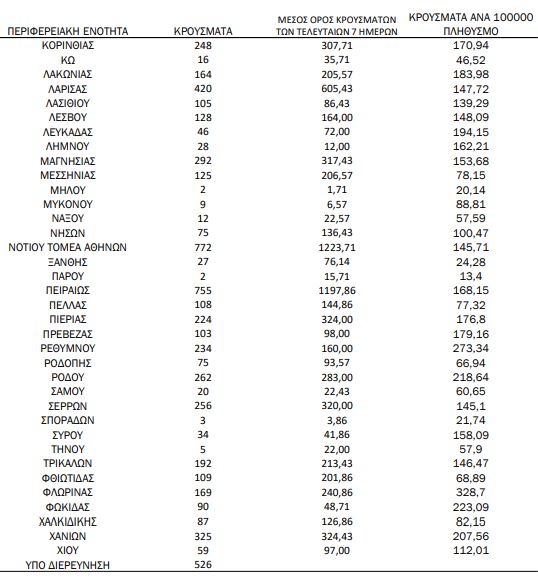Αναλυτικότερα τα κρούσματα στις περιφερειακές ενότητες που ανήκουν στην Αττική: