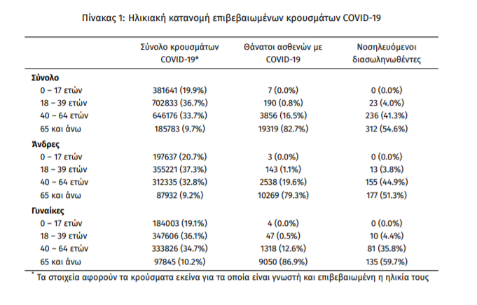 Οι νέοι θάνατοι ασθενών με COVID-19 είναι 97, ενώ από την έναρξη της επιδημίας έχουν καταγραφεί συνολικά 23.372 θάνατοι. Το 95.0% είχε υποκείμενο νόσημα ή/και ηλικία 70 ετών και άνω.