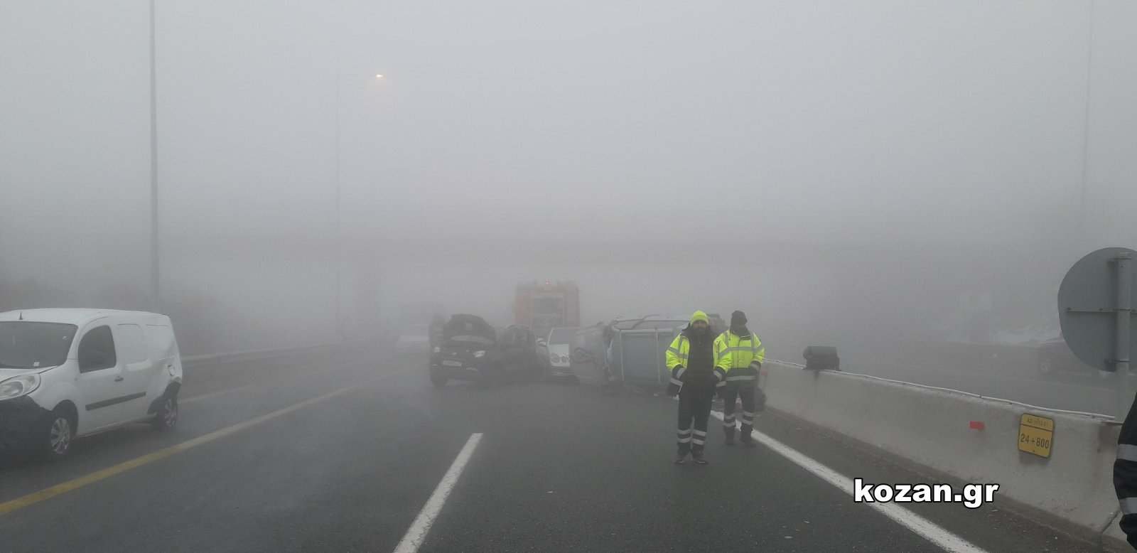 Σύμφωνα με πληροφορίες της ΕΡΤ, αρχικά ενεπλάκησαν πέντε οχήματα, όμως στην συνέχεια έφτασαν τα 50, ενώ υπάρχουν αναφορές για τον εγκλωβισμό 3-4 επιβατών, οι οποίοι έχουν τραυματιστεί ελαφρά. Μάλιστα, σύμφωνα με το kozan.gr, 13 άτομα τραυματίστηκαν και μεταφέρθηκαν στο Μαμάτσειο νοσοκομείο με τρία ασθενοφόρα.