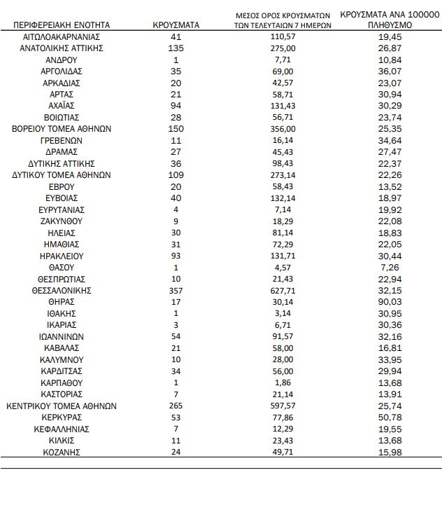 Πώς κατανέμονται τα νέα κρούσματα κορωνοϊού που ανακοινώθηκαν από τον ΕΟΔΥ