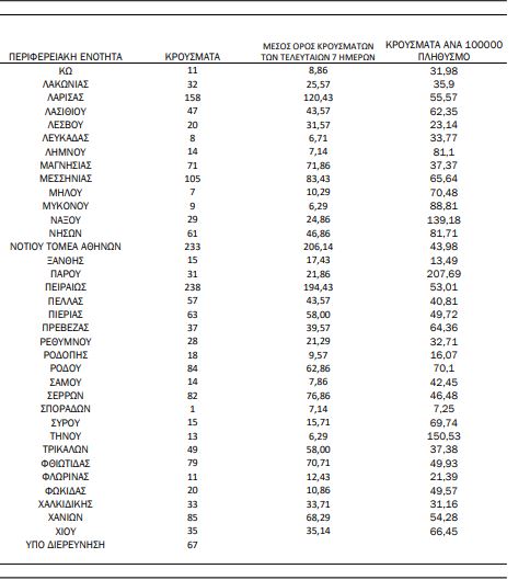 Πώς κατανέμονται τα νέα κρούσματα κορονοϊού που ανακοινώθηκαν από τον ΕΟΔΥ