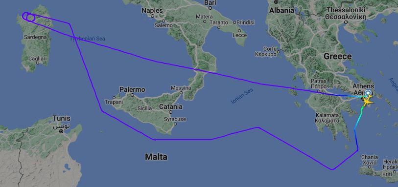 Το αεροσκάφος πετούσε πάνω από τη Μάλτα όταν έλαβε εντολή για άμεση προσγείωση, ωστόσο ούτε η Γαλλία ούτε η Ιταλία δέχτηκαν, με αποτέλεσμα να επιστρέψει στην Αθήνα, από όπου ξεκίνησε, όπως φαίνεται και στο παρακάτω γράφημα του ιστοτόπου Flighradar24.